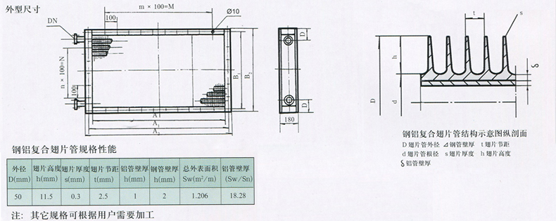 鋼鋁復合翅片管觀格性能見表。