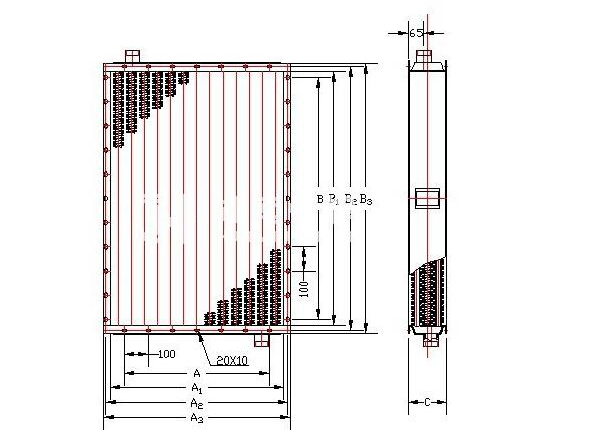 舉例:12×5/3表示:表面長1250mm,寬545,由3排散熱管組成。